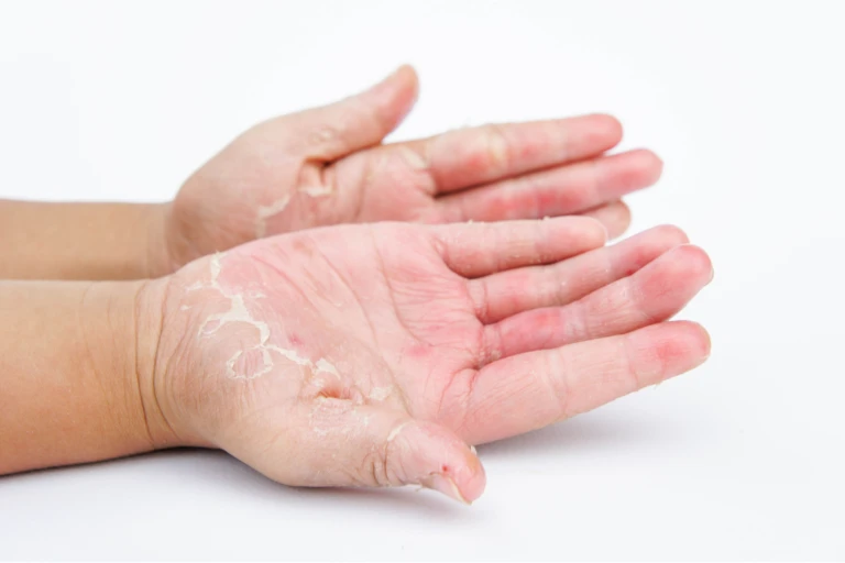 Alergia causada por substâncias que irritam a pele. O diagnóstico identifica o agente e o tratamento elimina a inflamação e o desconforto.